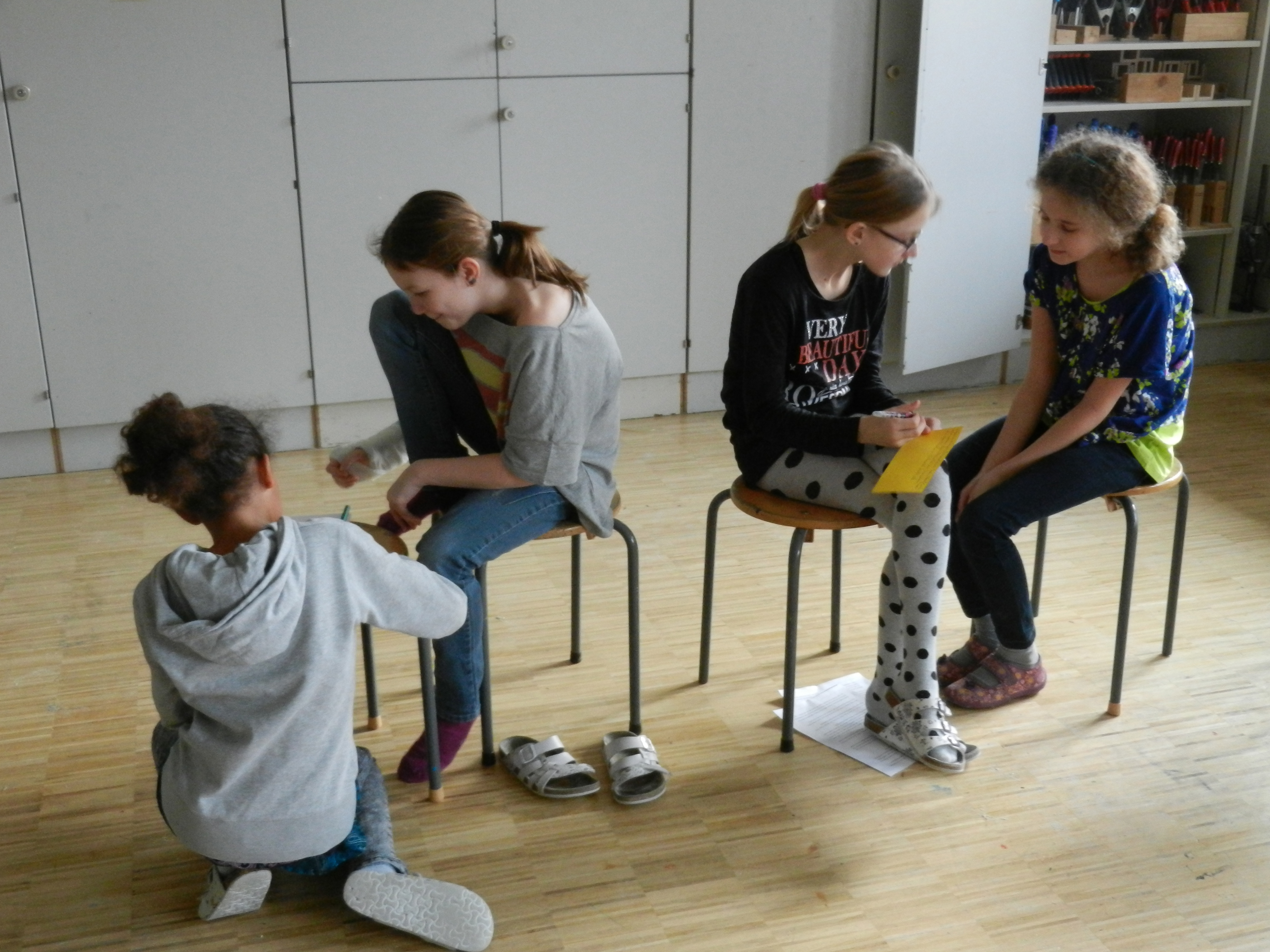 Viele Geschichten beschäftigen sich mit dem Glück, sei es das Märchen „Hans im Glück“ oder die Geschichte „Das Hemd des Glücklichen“ von Italo Calvino. Natürlich interessieren wir uns alle dafür und wollen wissen, was die Quelle des Glücks sein kann. In diesem Workshop sind wir von der Geschichte des Philosophen Gareth B. Matthews ausgegangen. Kann es sein, dass auch Tiere und Pflanzen glücklich sind? Was ist Glück überhaupt? Gibt es einen Unterschied zwischen Glück und glücklich sein? Ist Glück ein Zustand oder ein Gefühl? Kann man das Glück selbst steuern? Kann man Glück nur erleben, wenn man weiß, was Unglück ist? Was haben berühmte Philosophen und Philosophinnen zu dem Thema geschrieben? Die Frage, ob wir ähnliche Gedanken und Vorstellungen haben, beschäftigte uns alle.