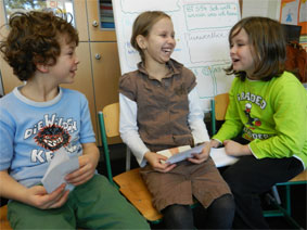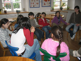 Bei dem Workshop wurden sehr viele Fragen gestellt. Ist das was wir sehen, hören, angreifen, schmecken und riechen auch wirklich? Was ist der Unterschied zwischen Traum und Wirklichkeit? Sind Träume wirklich? Kann es überhaupt zwei Menschen geben, die dasselbe genauso erleben und erkennen? Wie wissen wir, was Wirklichkeit ist? Ausgehend von den eigenen Erfahrungen wurde gemeinsam nachgedacht, wie Wirklichkeit erlebt wird. Kinder brachten auch viele Beispiele aus ihrem Alltag. Die neuen Medien spielten dabei eine große Rolle und die Frage zwischen den Unterschied zwischen Realität und Virtualität stand bald im Mittelpunkt. |