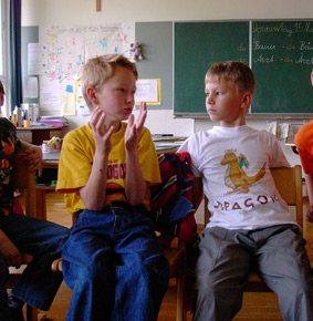 Was wäre, wenn es keine Worte gäbe? Wäre eine Welt ohne Sprache überhaupt denkbar? Welche Bedeutung hat die Sprache für den Menschen? Mit Hilfe der Sprache tauschen Menschen Gedanken und Informationen aus. Da es aber unzählige Sprachen auf der Welt gibt, kommt es oft zu Verständigungsproblemen. Manchmal entstehen auch Missverständnisse, weil Wörter mehrere Bedeutungen haben können. Wir wollen gemeinsam über das Entstehen von Sprache nachdenken und die Welt der Sprachen erkunden. |