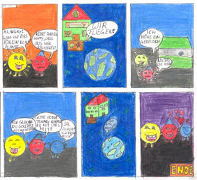 In diesem Workshop beschäftigten wir uns mit Comics. Doch was haben Comics mit Philosophie zu tun? Linus will wissen, was ein Philosoph ist? Ist jeder, der etwas wissen will, schon ein Philosoph? Die „Peanuts“ lassen Taten sprechen und sie kommen oft ganz ohne Text aus. In vielen Comics ist von Freiheit und anderen demokratischen Werten die Rede. Gemeinsam begaben wir uns auf eine abenteuerliche Expedition in die Welt der Bilder und der Fantasie waren keine Grenzen gesetzt. |